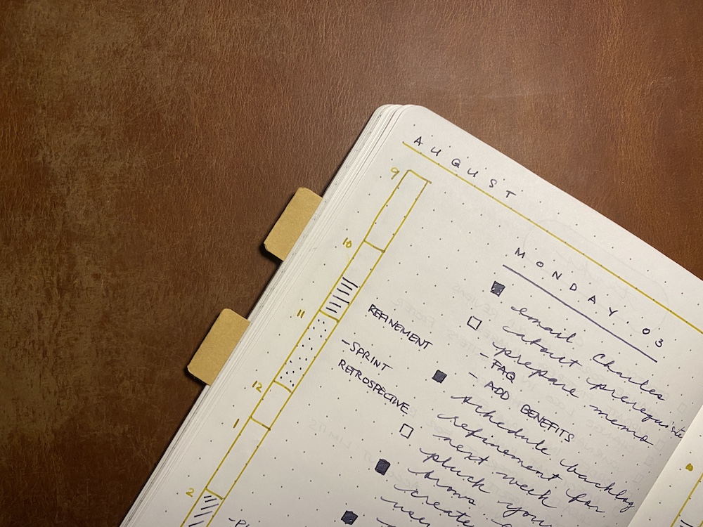 Hoever, I wasn’t able to use this method because relied on my digital calendar for meetings. I was also hesitant because of the potential amount of space that it took on an A5 notebook.