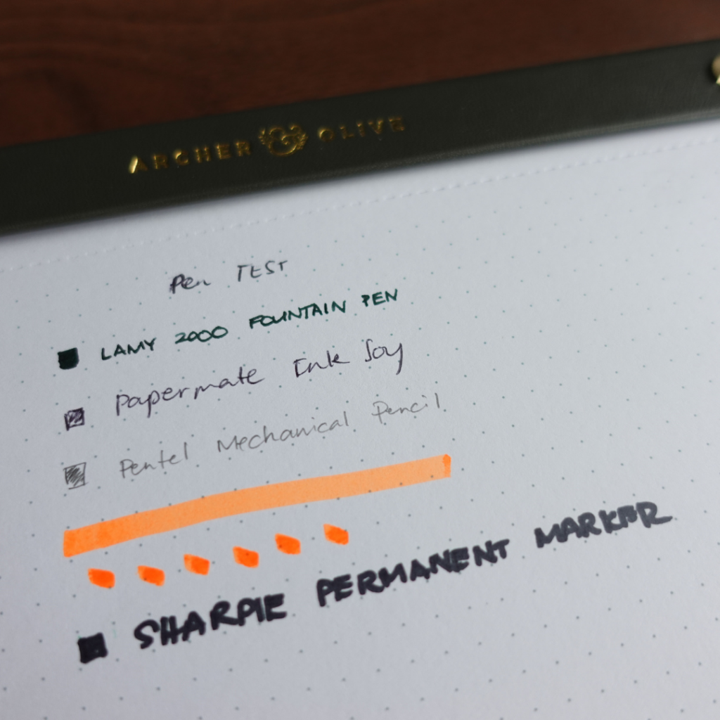 The paper is of high quality, no doubt about that. At 160gsm, it was able to handle different types of pens without feathering or bleeding. The only exception (has always been the case for most papers) is the Sharpie permanent marker.