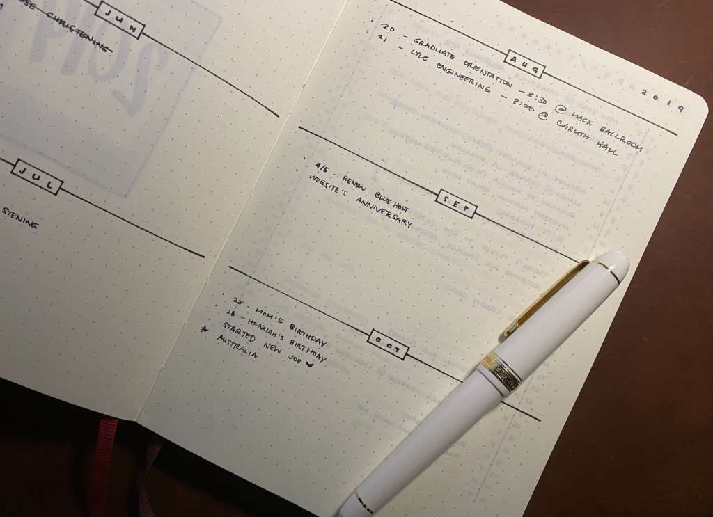 Did you buy a new iPad last August? You can list it down in the August section of the Future Log. This way, you will be able to have a quick view immediately as you flip through the Future Log. Let’s not forget to write this down in the monthly or daily log as well.