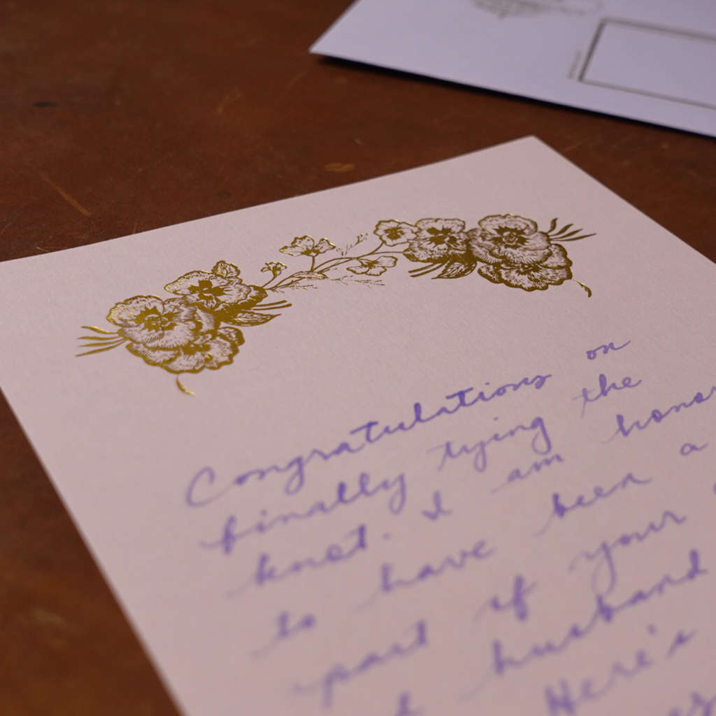 Paper quality of both LA Paper Lover stationery sets is just wonderful. Their weight is 70lbs and some (the “pansy designs”) are 80 lbs. The foil designs around the stationery is also of high-quality. You can tell that there were little to no compromises into creating these stationery sets.