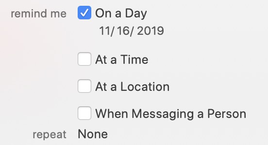 Ever since Apple improved their Reminders app, I found myself using it more. I still write most of my tasks in my bullet journal but I turn to my Reminders app for recurring reminders and the “remind me” feature – especially when messaging a person.