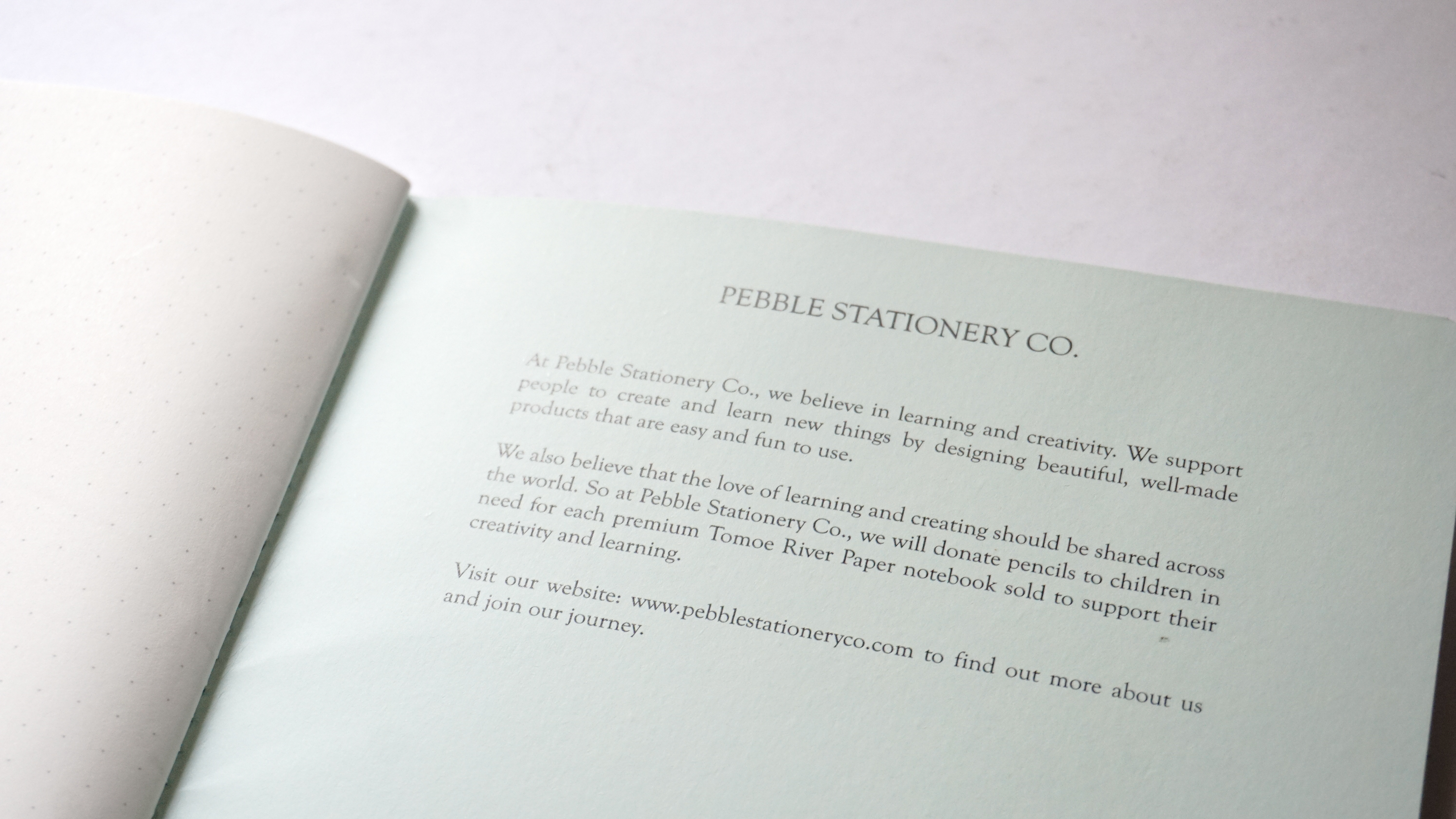 Yes, it’s another Tomoe River notebook, which is great for most fountain pen enthusiasts. The quality of paper on the Pebble Stationery notebooks will not vary with other brands that use Tomoe River paper. One thing that you should note is that for every notebook (TMR) that you purchase from Pebble Stationery Co, a pencil will be donated to a child in need. Pretty neat, huh?
