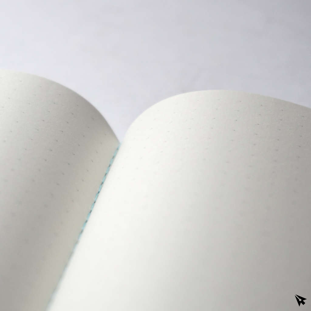 The A5 cahier has a 5mm dot grid. The dots are faint and will definitely not bother you as you write.