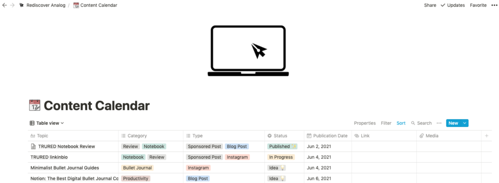 First things first, pet care and all of our cat research and information that used to be on Trello has found a new home in Notion. Then the same goes for my content calendar (which I have always kept digital).
