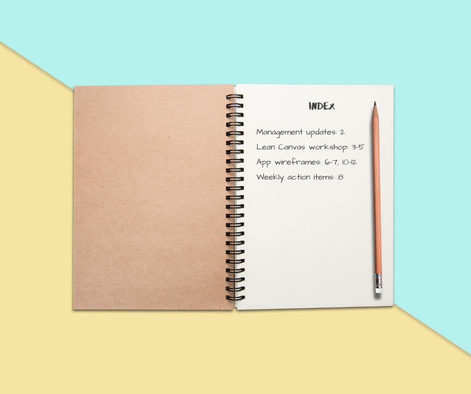 The index lies in the first few pages of your notebook. For every new topic or page in your notebook, add a page number (if the notebook doesn’t have one) and write down the topic and then the page number in your Index page.
