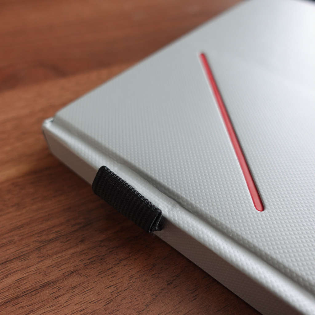The TRU RED Starter Journal has a unique design. On first look, you will see an unconventional elastic strap which goes around the lower right side of the notebook. The red accent on the upper left is not purely aesthetic but is also a dedicated business card holder.