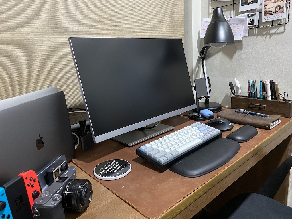 The leather desk mat from Galen Leather originally was part of my computer desk setup. The desk lamp was also a staple in my workspace.